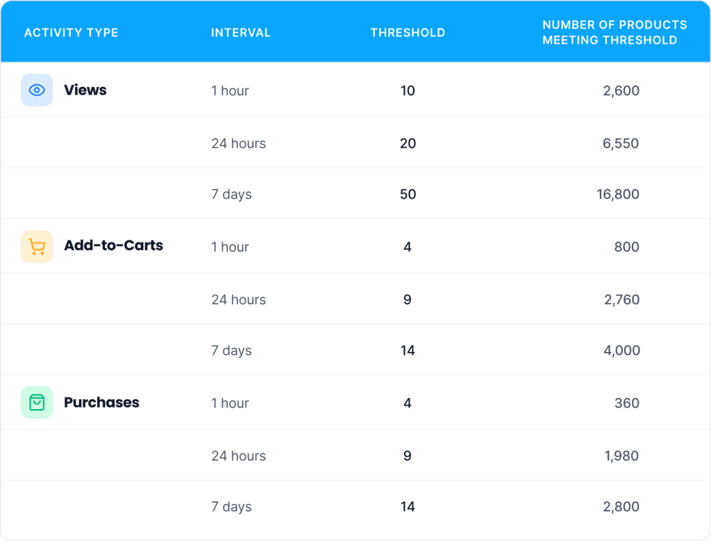 Set your threshold too high, and only a handful of products show activity. Too low, and the message feels unconvincing.