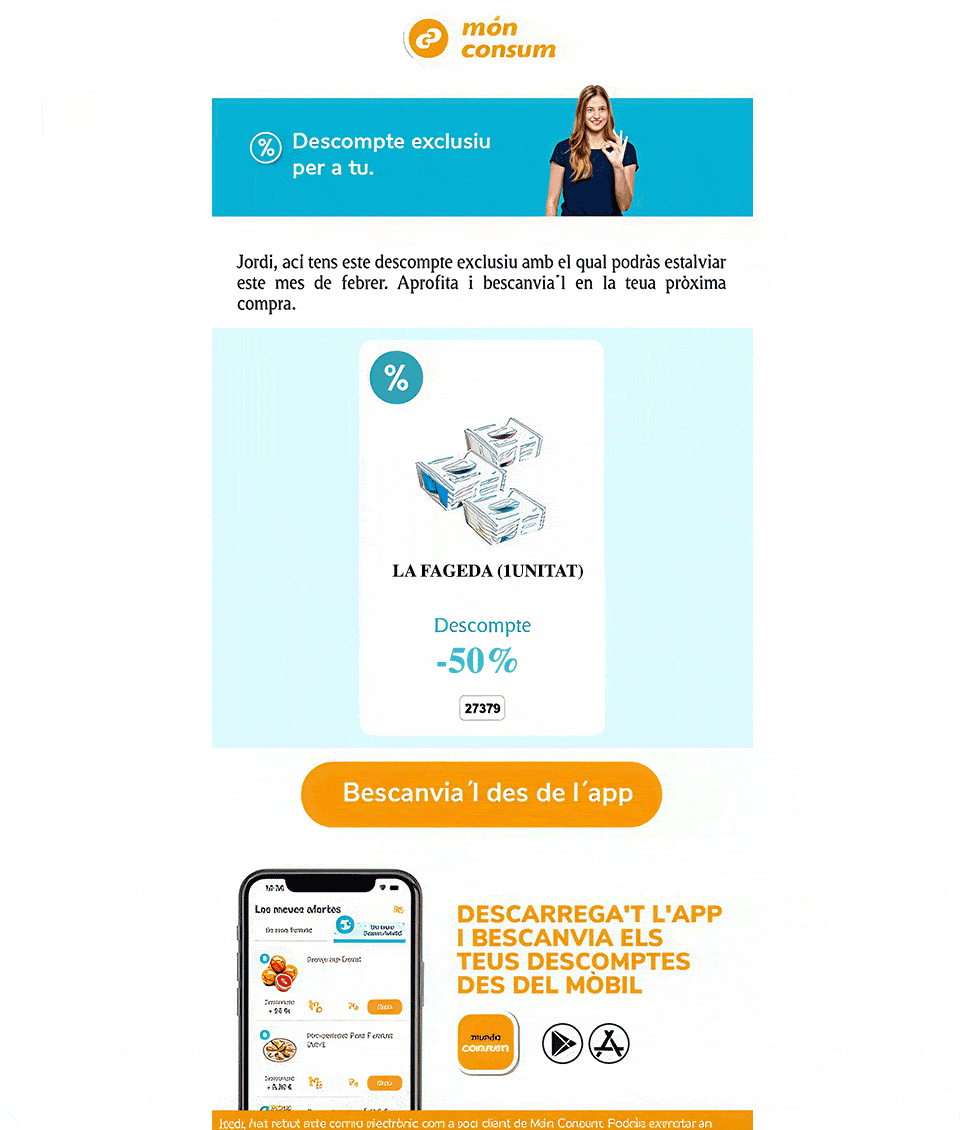 Consum is Spain’s cooperative with the largest number of members and a leading regional supermarket chain, headquartered in Silla, Valencia. Founded in 1975, Consum has grown into a trusted brand for over 5 million customers, operating a network of 1,000+ supermarkets across six autonomous communities (Comunidad Valenciana, Cataluña, Murcia, Castilla-La Mancha, Andalucía y Aragón). Consum operates a robust benefits program called Mundo Consum, which offers exclusive benefits to its member-customers, including a monthly cashback check and personalized product offers.